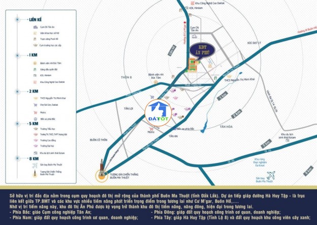 * Vị trí: Đường Hà Huy Tập, phường Tân An, TP. Buôn Ma Thuột, Đăk Lăk * Quy Mô: 19,5 ha - Mật độ xây dựng: 44% (Với 3 công viên rộng 2,6ha)