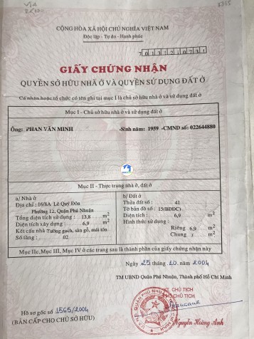 GIA ĐÌNH CHUYỂN VỀ QUÊ CẦN BÁN GẤP NHÀ TẠI LÊ QUÝ ĐÔN - PHƯỜNG 12 - QUẬN PHÚ NHU